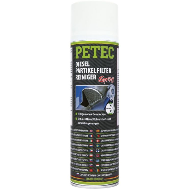 Dieselpartikelfilterreiniger Zum Lösen von Verschmutzungen und Reinigen des Dieselpartikelfilters. Auch zur Reinigung des Abgasrückführungsventils. Löst & entfernt Kohlenstoff- und Ascheablagerungen Reinigen ohne Demontage Schnell & effektiv Rückstandsfrei Verbessert die Abgaswerte und verhindert Leistungsverlust Nicht entzündbar 360°-Ventil Technische Merkmale: Fassungsvermögen: 400 ml Lagerfähigkeit: 36 Monate, kühl und trocken lagern Gefahrenkennzeichnung H222  Extrem entzündbares Aerosol. H229  Behälter steht unter Druck: Kann bei Erwärmung bersten. H314  Verursacht schwere Verätzungen der Haut und Augenschäden P102  Darf nicht in die Hände von Kindern gelangen. P210  Von Hitze, heißen Oberflächen, Funken, offenen Flammen sowie anderen Zündquellenarten fernhalten. Nicht rauchen. P211  Nicht gegen offene Flamme oder andere Zündquelle sprühen. P251  Nicht durchstechen oder verbrennen, auch nicht nach Gebrauch. P303 + P361 + P353 + P310  Bei Kontakt mit der Haut (oder dem Haar): Alle kontaminierten Kleidungsstücke sofort P305 + P351 + P338  Bei Kontakt mit den Augen: Einige Minuten lang behutsam mit Wasser spülen. Eventuell vorhandene Kontaktlinsen nach Möglichkeit entfernen. Weiter spülen. P410 + P412  Vor Sonnenbestrahlung schützen und nicht Temperaturen über 50 °C/122 °F aussetzen. P501  Inhalt/Behälter gemäß lokalen/regionalen/nationalen/internationalen Vorschriften der Entsorgung zuführen