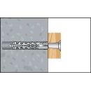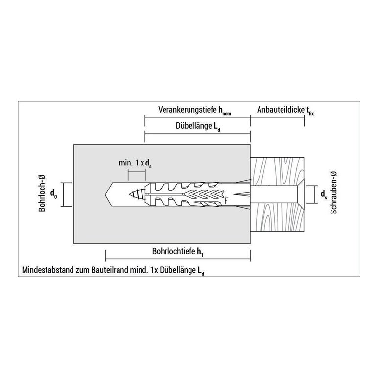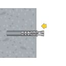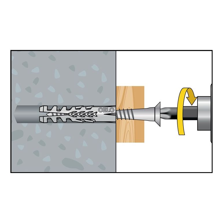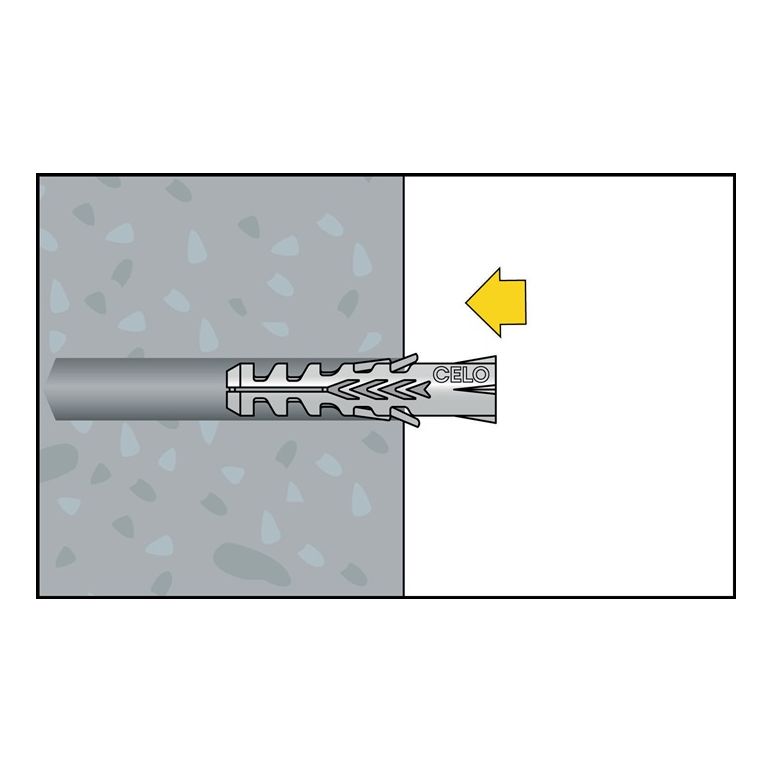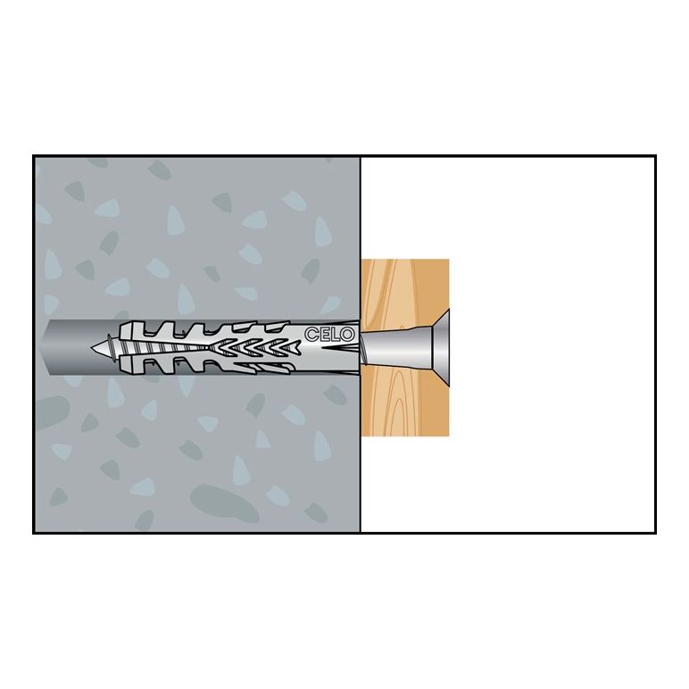 Hohe Auszugswerte werden aufgrund der starken Spreizfähigkeit mit dem CELO Normaldübel F erreicht. Der Nylondübel ist in einem großen Sortiment in den Durchmessergrößen 4-20mm verfügbar. Er ist ideal geeignet für Vollbaustoffe · erreicht aber auch gute Lastwerte in Lochsteinen und Porenbeton. Durch seine sehr gute Schraubenführung kann die Schraube nicht seitlich aus dem Dübel austreten. Die ausgeprägten Flügel verhindern wirksam das Mitdrehen im Bohrloch. Zudem verhindert die stabile Formgebung das Abknicken beim Einschlagen.Weitere technische Eigenschaften:· Temperaturbereich: -40-80°C· Anwendungsbeispiele: Lampen, Elektroschalter, Wandregale, Hängeschränke, Briefkästen, Gardinenschienen, Sanitärbefestigungen, Handläufe, TV-Halterungen, Bilder· Marketingclaim: Der Klassiker für Vollbaustoffe· Materialeignung: Beton, Naturstein, Vollziegel, Kalksand-Vollstein, Vollstein aus Leichtbeton, Porenbeton, Gips-Wandbauplatten· Vorteile: Hohe Auszugswerte aufgrund starker Spreizfähigkeit (vierseitige Spreizung im mittleren Bereich), Ideal geeignet für Vollbaustoffe, erreicht aber auch gute Lastwerte in Lochsteinen und Porenbeton, Sehr gute Schraubenführung, d. h. die Schraube kann nicht seitlich aus dem Dübel austreten, Verfügbar in einem großen Sortiment in den Durchmessergrößen 4-20mm, Hohe Verdrehsicherheit durch ausgeprägte Flügel, Stabile Formgebung verhindert Abknicken beim Einschlagen, Sehr gute Schraubenführung, d. h. die Schraube kann nicht aus dem Dübel seitlich austreten, Hohe Verdrehsicherheit, Gute Lastwerte auch in Lochsteinen und Porenbeton