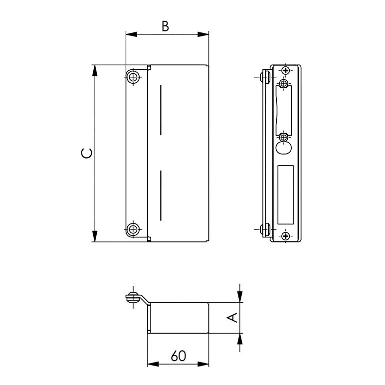 schmal · blank · zum Anschweißen für Doppeltore · Schließblech verzinkt · für elektrischen Türöffner vorgerichtet · links und rechts verwendbarWeitere technische Eigenschaften:· Befestigungsart: zum Anschweißen· Maß B: 81mm· Maß C: 173mm· Ausführung: für E-Öffner· Maß A: 40mm