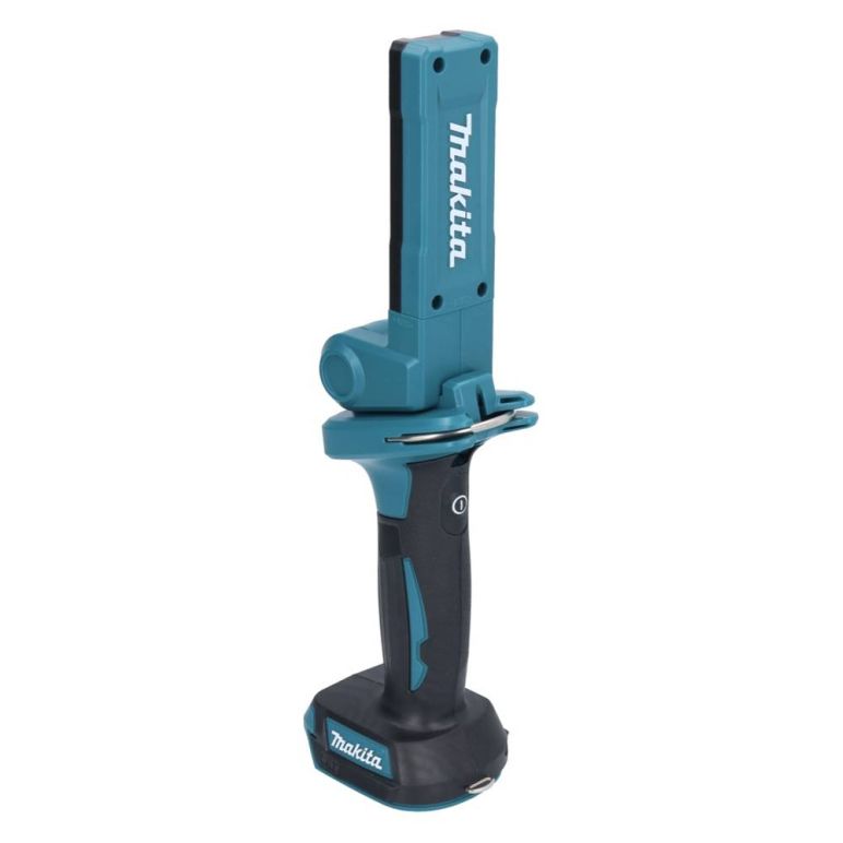 Die Makita DML 816 Akku LED Arbeitsleuchte bietet drei Helligkeitsstufen in den Stufen 100, 250 und 500 Lumen sowie einen 360° drehbaren, herausziehbaren Metallhaken zum einfachen Aufhängen. Ihr Leuchtkopf ist verstellbar, sodass der Lichtkegel präzise ausgerichtet werden kann. Zudem ist sie platzsparend zusammenklappbar.