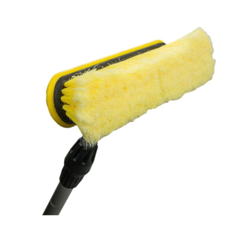 Mit der Autowaschbürste mit Teleskopstange wird das Autowaschen zum Kinderspiel. Die Teleskopstange ist von 100 bis 160 cm verstellbar, so können Sie ohne große Verrenkungen auch das Dach Ihres Wagens reinigen. Darüberhinaus ist die große Bürste mit einem Strömungswächter ausgestattet und verfügt auch über einen on/off-Schalter. Die Polyester-Borsten der Bürste sind an den Spitzen gesplisst, was für eine äußerst gründliche und dennoch lackschonende Reinigung sorgt. Zudem ist die Bürste hat die Bürste eine hohe Beständigkeit bei Reinigungsmitteln und für die Reinigung der verschiedensten Fahrzeuge wie unter anderem Bussen, Lkw, Motorrad, Boot und natürlich auch für Ihren Pkw geeignet! Die Autowaschbürste kann an jede Schlauchkupplung angeschlossen werden. Maße: Stiellänge: 100 - 160 cm Bürstenbreite: 25 cm Bürstentiefe: 15 cm Bürstenhöhe: 10 cm Filament ø 0,25mm Filament Länge 60mm