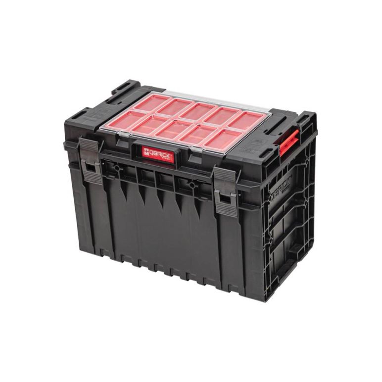 Der ONE 450 ist ein Werkzeugkoffer mit einem sehr großen Fassungsvermögen von 52 Litern. Dadurch ist es in der Lage, große Elektrowerkzeuge und Handwerkzeuge aufzunehmen. Zwei verstellbare Fächer sorgen für Ordnung im Inneren der Box. Jede Box ist mit einer flexiblen Dichtung ausgestattet, die vollen Schutz gegen das Eindringen von Staub und Wasser bietet (IP66). Er ist serienmäßig mit zwei verstellbaren Trennwänden ausgestattet, die eine perfekte Organisation des Raums im Inneren des Kastens ermöglichen. Der neue EXPERT-Deckel bietet neue Aufbewahrungsmöglichkeiten. Ausgestattet mit 8 Eimern in verschiedenen Größen ermöglicht er die Aufbewahrung von kleinem und länglichem Werkstattzubehör. Der lange Aluminiumgriff sorgt für hohe Ergonomie beim Transport. Die Version 2.0 der ONE-Produktlinie ist eine neue Generation von Werkzeugkästen und Organizern mit einem verstärkten Design. Durch die zusätzliche Anpassung der Gehäuse an M8-Gewindeeinsätze kann das System an die Bedürfnisse des Anwenders angepasst werden.