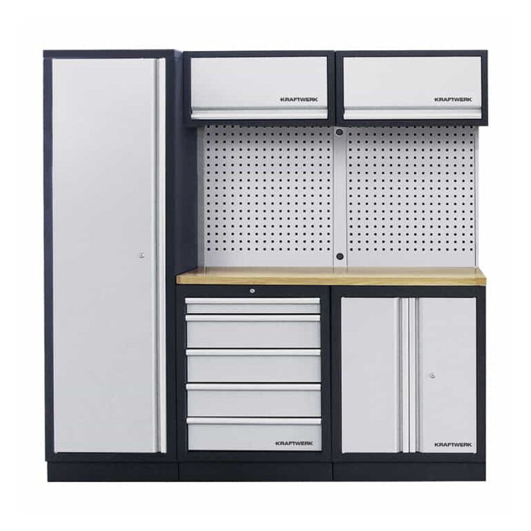 • 2 Werkzeug-Lochwände. 1 Multiplex-Arbeitsplatte (Made in Germany)