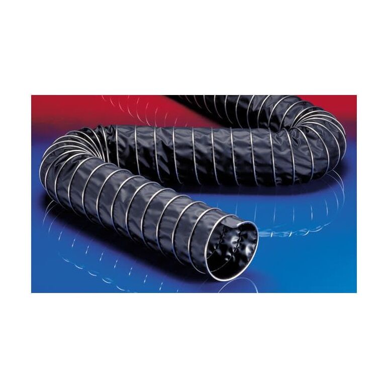 Hochtemperatur Absaug- und Gebläseschlauch; CSM, superleicht, hochflexibel + stauchbar, Ø bis 1.000 mm (bis 170°C) nChemieindustrie: Absaugung von Chemiedämpfen, Gaspendelschläuche an Verladearmen, Farbdämpfeabsaugung, Farbnebelabsaugung; Hochtemperaturabsaugung: Ofen/ Öfen, Gießereien, Hochofen/ Hochöfen, Schmelzen, Keramikindustrie, Glasindustrie, Stahlwerke, Aluminiumhütten; Faltenbalg, KompensatorEigenschaften: Scheuerschutz durch äußeres Klemmprofil; vibrationsfest; sehr gut hitzebeständig; geringes Gewicht; gute Öl-, Benzin- und Chemikalienbeständigkeit; gute Laugen- und Säurenbeständigkeit nTemperaturbereich: -40°C bis 170°C nnKonstruktion, Werkstoff: CP-Konstruktion; Klemmprofil-Stützwendel: Stahl verzinkt; Wandung: CSM beschichtetes Polyestergewebe