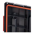 Die PRIME-Boxen können dank zusätzlicher Verrippung einem Druck von bis zu 120 kg standhalten und bieten so die Möglichkeit, komfortable Arbeitsplattformen zu schaffen. Der Koffer 250 ist mit 3 verstellbaren Trennwänden, einer praktischen Ablage und einem Vario-Deckel ausgestattet und lässt sich mit den Modulen der PRO-Linie (Toolcase, Technician Case 2.0, Toolbox 2.0, Schublade 2.3 2.0 Toolbox, 500, Box 130 2.0, Organizer 100, 200 und 300) kombinieren.