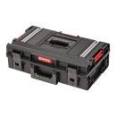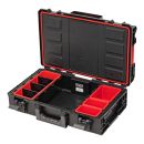 Der ONE 200 2.0 Technik vereint die Eigenschaften eines Werkzeugbehälters mit einem Organizer. Mit verstellbaren Trennwänden und herausnehmbaren Eimern kann der Benutzer seine optimale Werkzeugkombination zusammenstellen. IP66-zertifizierte Dichtungen bieten vollen Schutz, während die Aluminium-Montageschienen die Nutzung als Arbeitsplattform ermöglichen. Die mitgelieferten QS PRO Connect Adapter erlauben die Anpassung an andere Module der PRO-Linie.