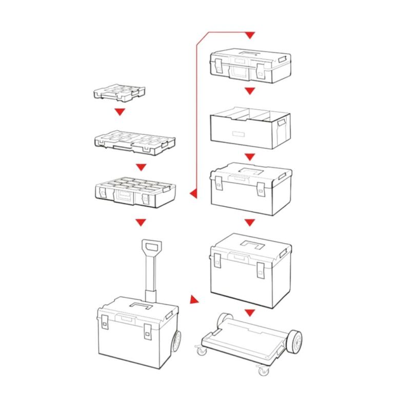 Der Rhino XXL Werkzeugkoffer (Höhe L) in der Comfort+ Variante macht seinem Namen alle Ehre. Er ist der größte Werkzeugkoffer der Comfort-Reihe, perfekt für den bequemen Transport dank mehrerer Griffmöglichkeiten und dazu noch mit zwei kleinen Organizer-Fächern im Deckel ausgestattet - das Schweizer Taschenmesser unter den Werkzeugkoffern. In der Höhe XL kommt der größte Rhino mit 2 Trennfächern im Koffer und mehreren Trennfächern im Deckel, alle individuell einsetzbar. Damit bieten sie Platz für verschiedenste Werkzeuge und Zubehör, für jeden Einsatz immer wieder neu anpassbar. Thema Kompatibilität: Der XXL Werkzeugkoffer ist mit den kompletten Rhino Sortiment kompatibel (direkt koppelbar oder mit Multi-Adapterplatte). So kannst du ihn mit weiteren Werkzeugkoffern und Organizern kombinieren oder mit dem XLL Cart direkt zur mobilen Werkstatt auf Rädern aufrüsten.Und durch die M8 Gewindeschrauben kannst Du außerdem auch noch eigene Kreationen an deinen Rhino anbringen - der Freiheit sind hier keine Grenzen gesetzt. Die Rhino XXL Reihe ist aus recyceltem Kunststoff hergestellt, der sich durch außergewöhnliche Beständigkeit gegen mechanische Beschädigungen auszeichnet, auch bei niedrigen Temperaturen von unter 0° - ausgelegt für jede Witterung. Gegen Staub und Wasser ist der Rhino nach IP66 Schutzklasse vollständig geschützt.