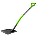 Ergonomic Schaufel für Garten- und Bauarbeiten Der Verto Schaufel ist durch das hochwertig gehärtete Stahl   ideal für das tägliche Arbeiten im Garten oder bei Bauarbeiten geeignet. Durch die ergonomische Form sowie den langen Stil ist der Kraftaufwand sehr gering. Der Griff aus profiliertem Stahlrohr , ist mit einem Kunststoff überzogen, der einen sicheren und stabilen Halt gewährleistet. Technische Daten komfortable Körperhaltung aus hochwertigem Stahl gefertigt Länge: 1250mm Schaufelbreite:  230mm Schaufellänge: 325mm Gewicht: 1890g Farbe: grün/schwarz