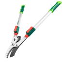 Teleskop Astschere von Verto 45 mm Schnittdurchmesser Die Teleskop-Astschere hat eine Länge von 670 - 970 mm und einem Schnittdurchmesser von bis zu 45 mm. Konzipiert ist sie für das Schneiden von dünnen und dicken Ästen. Teflonbeschichtete Klinge zum Schutz vor Korrosion. Ein zusätzlicher Vorteil ist das Zahnrad, das die zum Schneiden erforderliche Kraft um 30% reduziert, und Aluminiumarme, die das Gewicht des Werkzeugs optimieren. Teleskoparme vergrößern den Arbeitsbereich des Werkzeugs. Ergonomischer Griff mit rutschfestem Material gewährleistet Sicherheit und Komfort bei der Arbeit. Besonderheiten: Länge von 670 - 970 mm Schnittdurchmesser von bis zu 45 mm Schutz vor Korrosion Aus Aluminium 2 Jahre Herstellergarantie Garantieinformation
