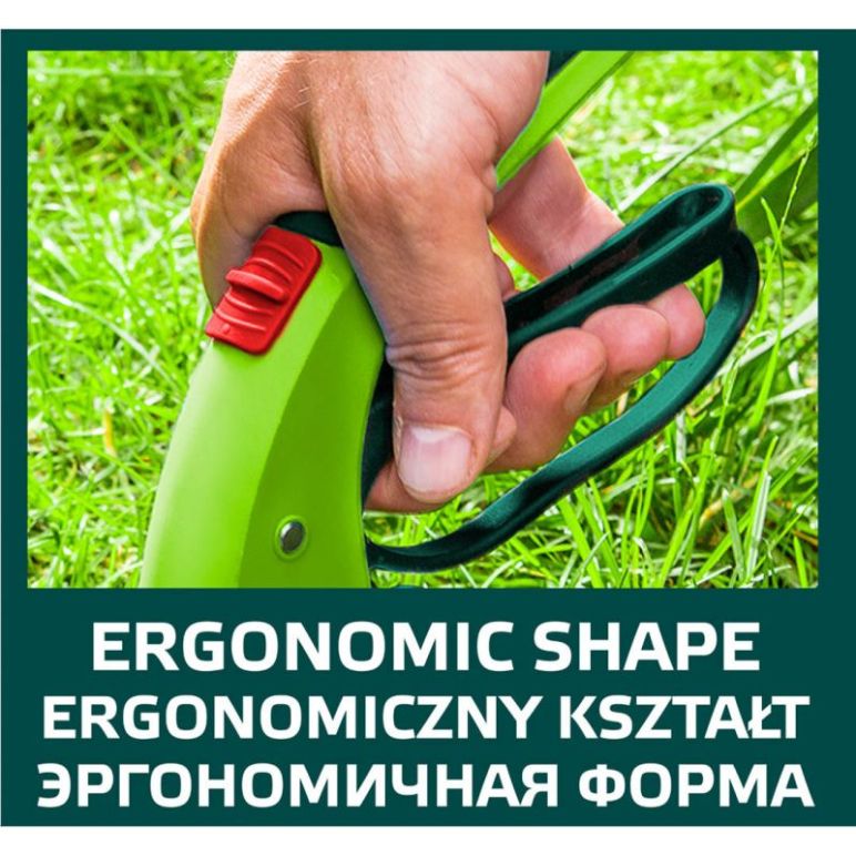 Mit dieser Rasenschere schneiden Sie auf die bequeme Art Durch den drehbaren Kopf der Schere lassen sich ohne viel Aufwand die Rasenkanten oder Ihre Sträucher beschneiden. Mit Ihrem ergonomischen Griff liegt die Schere sehr gut in der Hand. Die Länge von insgesamt 340 mm und einer Klinge von 130 mm ermöglichen einen sauberen und effektiven Schnitt. Technische Merkmale:     • Kopf um 360° Drehbar     • Teflon Beschichtung     • 340 mm davon 130 mm Klinge     • Ergonomischer Griff mit Handschutz