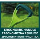 VERTO Flachspaten T-REX Der Verto Flachspaten T-Rex eignet sich aufgrund der geschärften Zacken am unteren Rand des aus hochwertigem Stahl gefertigten Kopfes besonders für bewurzeltes Gelände und zur Begradigung von Rasenflächen. Sein kunststoffbeschichteter Griff vermindert ein Abrutschen der Hand, während der ergonomisch geformte Handgriff und die profilierte Fußstütze für eine saubere Führung des Spaten sorgen. Technische Daten ermöglicht eine komfortable Körperhaltung aus hochwertigem Stahl gefertigt scharfer Spatenkopf für bewurzeltes Gelände geeignet zusätzliche Metallverstärkung der Welle mit dem Spatenkopf Gesamtlänge: 1150 mm