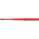 Wechselklinge mit reduziertem Klingendurchmesser mit integrierter Schutzisolation, so können tiefliegende Schraub- und Federelemente erreicht und betätigt werden. Stückgeprüfte Werkzeuge gem. IEC 60900. Stückprüfung bei 10.000 V für sicheres Arbeiten bei der zugelassenen Spannung von 1.000 V.