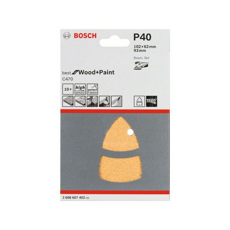 Bosch Schleifblatt-Set C470, Best for Wood and Paint, 102 x 62, 93 mm, 40, 10er-Pack (2 608 607 402)