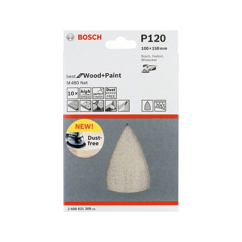Bosch Schleifblatt M480 Net, Best for Wood and Paint, 100 x 150 mm, 120, 10er-Pack (2 608 621 209)
