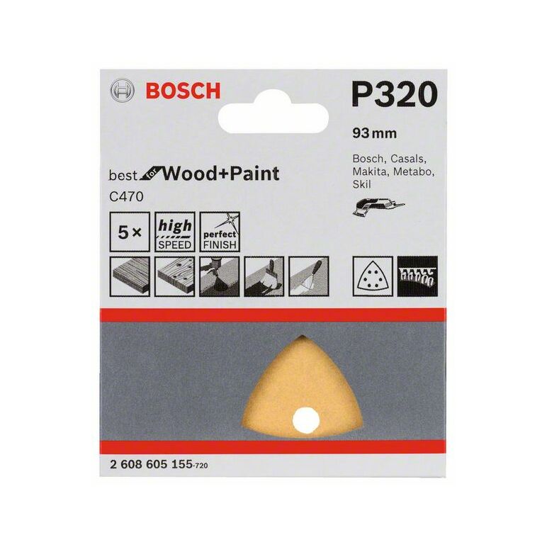 Bosch Schleifblatt C470 für Deltaschleifer, 93 mm, 320, 6 Löcher, Klett, 5er-Pack (2 608 605 155)