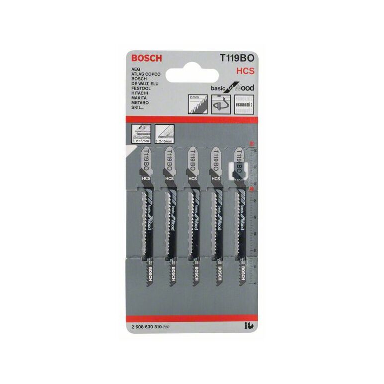 Bosch Accessories 2608630310 Stichsägeblatt T 119 BO Basic for Wood, 5er-Pack 5St.