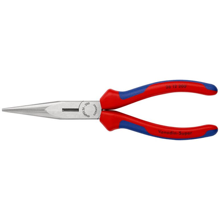 Elastische Spitzen: formstabil auch bei Verwindung. Verwindungstolerante, elastische Präzisionsspitzen. Flach-runde, lange, spitz zulaufende Backen. Mit Schneiden für weichen, mittelharten und harten Draht. Schneiden zusätzlich induktiv gehärtet, Schneidenhärte ca. 61 HRC. gerade Backen.