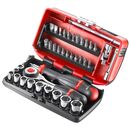 Sortiment 1/4" - Antriebselemente, Bits Serie 1, Sechskant-Steckschlüssel, Umschaltknarre | Zollmaße | ultrakompakter Kasten, 38-tlg.