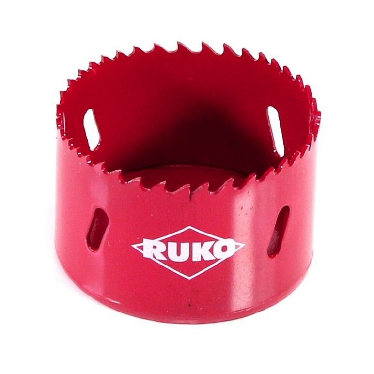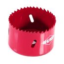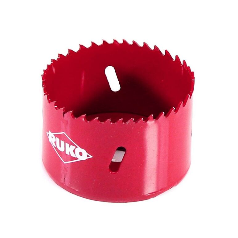 Der Grundkörper und die Schneiden der Bimetall-Lochsäge bestehen aus zwei unterschiedlichen Werkzeugstählen (Bimetall). Der Grundkörper besteht aus einem biegsamen Spezialstahl und die Zähne, die den Werkstoff schneiden, aus HSS. Die variablen Zahnungen sorgen, bei leicht zerspanbaren Werkstoffen dafür, dass sich die Lochsäge nicht im Material verhakt, ruhiger läuft, der Schnitt gleichmäßiger ist bei geringerem Kraftaufwand. Durch die geringere Vibration und Wärmeentwicklung beim Schneiden wird eine bis zu dreifache Standzeiterhöhung erzielt. Bimetall-Lochsägen haben im Vergleich zu Hartmetall-Lochsägen eine größere Anzahl an Zähnen, die einen sauberen Schnitt ermöglichen. Bei leicht zerspanbaren Werkstoffen wie z.B. Aluminium, Holz oder Rigips, räumt die variable Zahnung das zerspante Material besser frei. Im Vergleich zur Bimetall-Lochsäge HSSE-Co 8 mit Feinverzahnung ist der Schnitt etwas gröber. Mit ihr werden oft Löcher für u.a. Steckdosen und Lichtschalter sowie Kabeldurchführungen in Schreibtischen oder in Küchenarbeitsplatten gebohrt. Mit der Bimetall-Lochsäge HSS arbeitet man eher im Trockenbaubereich. In Holz oder weichen Kunststoffen erreicht man eine Schnitttiefe von bis zu 28,0 mm.