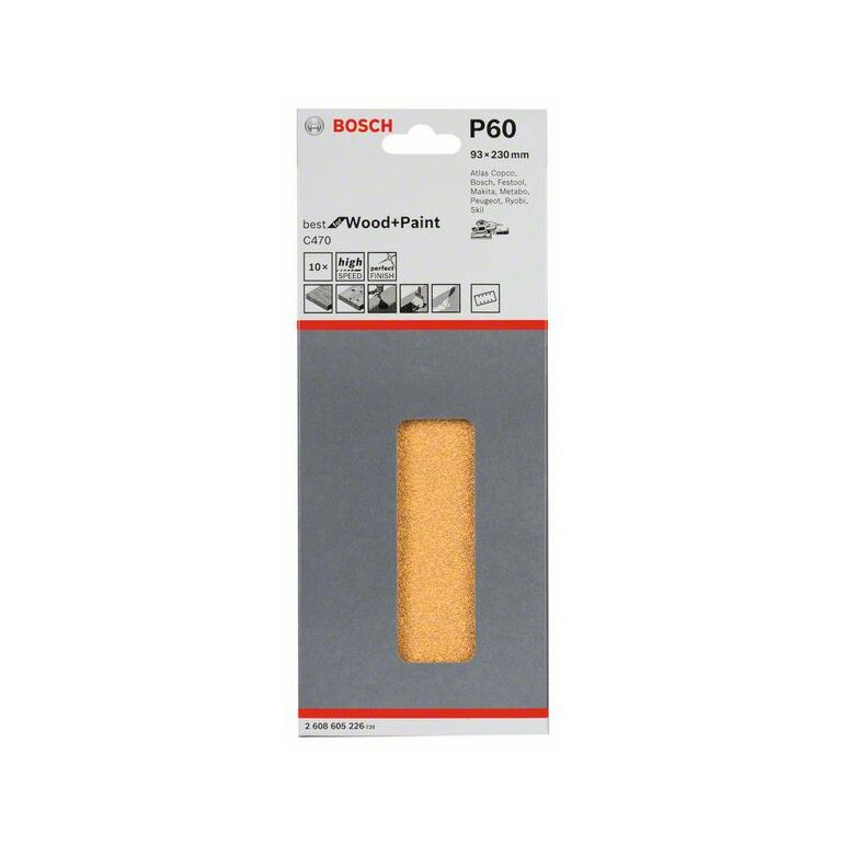 Bosch - 2608605226 Schleifblatt C470, 10er-Pack 93 x 230 mm, 60