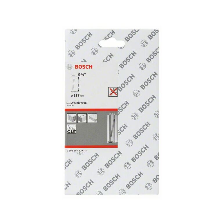 Bosch Diamanttrockenbohrkrone G 1/2 Zoll, Best for Universal, 117 mm, 150 mm, 6, 7 mm (2 608 587 329)