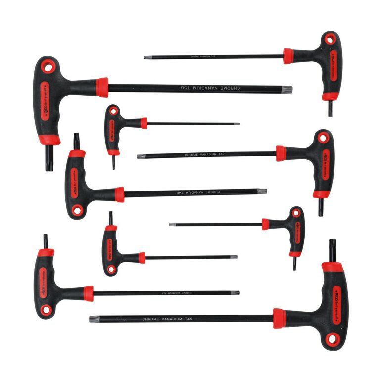 Schraubendreher-Satz mit T-Griff und seitlicher Klinge T-Profil (für Torx) mit Bohrung T10 - T50 9-tlg.