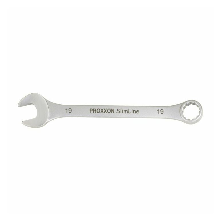 SlimLine-Doppelmaulschlüssel von Proxxon aus CrV-Stahl geschmiedet, sorgfältig gehärtet und vergütet.