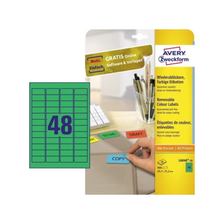 960 AVERY Zweckform Etiketten L6040-20 grün 45,7 x 21,2 mm