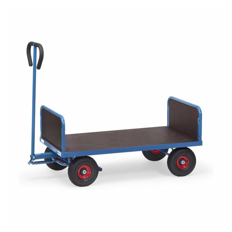 - Ladefläche aus wasserfestem Sperrholz, mit 2 Stirnwänden 300 mm hoch, Stahlrohrrahmen mit wasserfesten Sperrholz