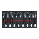 - Fehlende Werkzeuge fallen sofort durch die rote Mulde auf