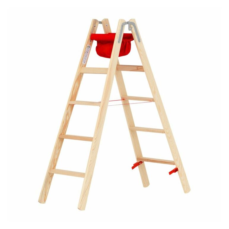 Hymer Holz-Stufenstehleiter 71499, beidseitig begehbar 2x10 Sprossen Arbeitshöhe 4,20 m
