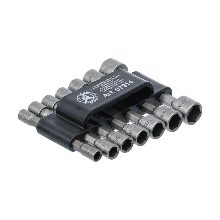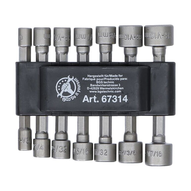 • 7 Steckschlüssel, Antrieb Außensechskant 6,3 mm (1/4"), Sechskant SW 3/16" - 1/4" - 9/32" - 5/16" - 11/32" - 3/8" - 7/16"