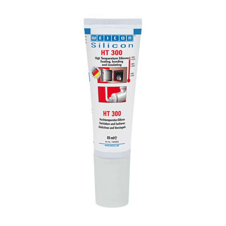 - Weicon HT 300 ist hochtemperaturbeständig (+300°C/+572°F), lösemittelfrei, haftstark, acetatvernetzend, witterungs-, alterungs- und chemikalienbeständig und extrem elastisch (Bruchdehnung von ca. 300%)