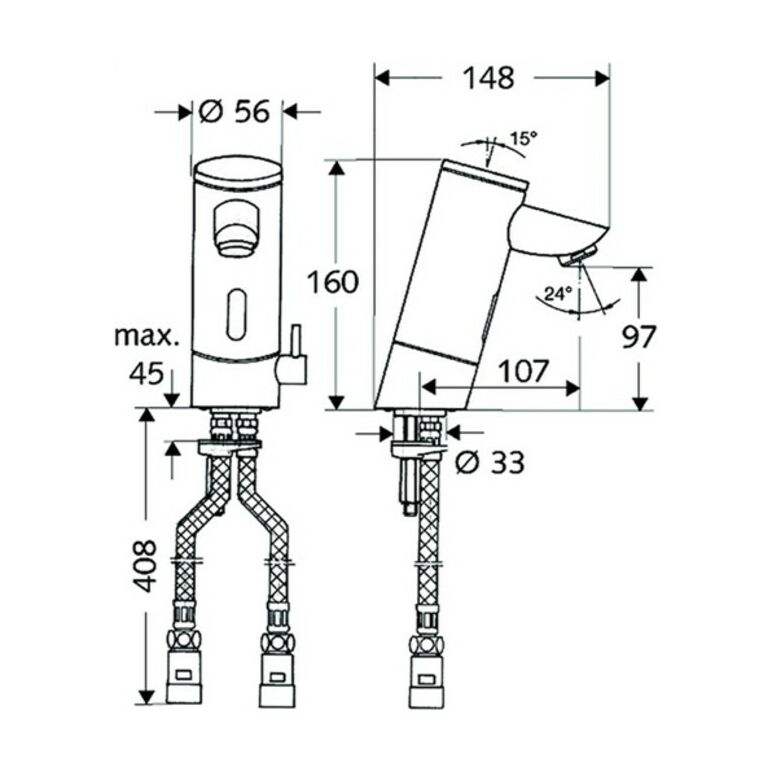 Schell Elektronische WT-Armatur PURIS Mischwasser 9 Volt chrom Typ HD-M