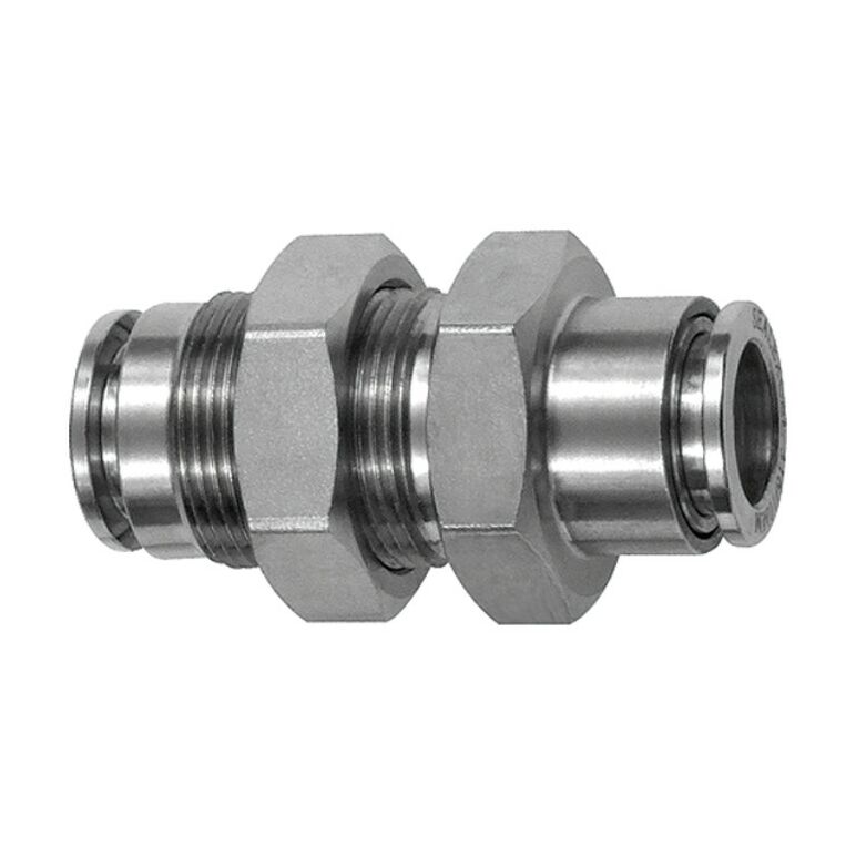 - Gerade Schott-Steckverbindung, M18x1,0, für Schlauch-Außen-Ø 10 mm, Arbeitsdruck max. 20 bar, Edelstahl 1.4404. Für den Einsatz in aggressiveren Umgebungen und bei korrosiven Medien