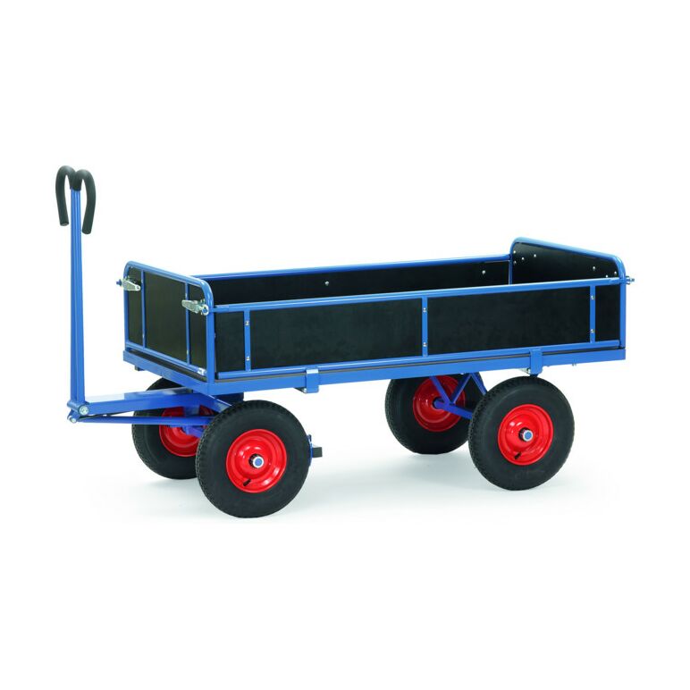 • Räder wahlweise mit Vollgummi- oder Luft-Bereifung, Naben mit Rollenlager
