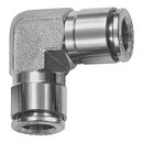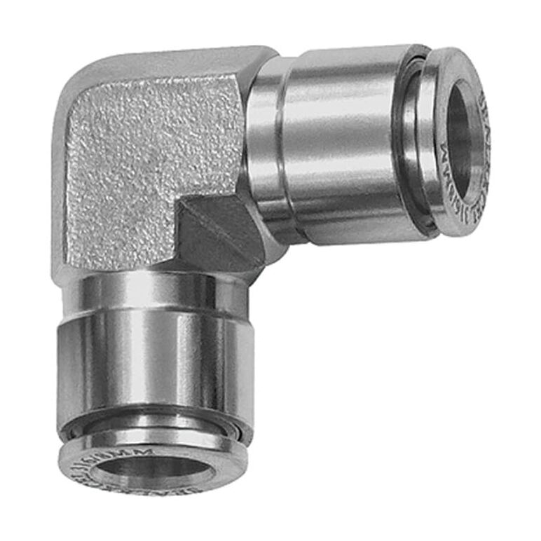 - L-Steckverbindung, für Schlauch-Außen-Ø 6 mm, Arbeitsdruck max. 20 bar, Edelstahl 1.4404. Für den Einsatz in aggressiveren Umgebungen und bei korrosiven Medien