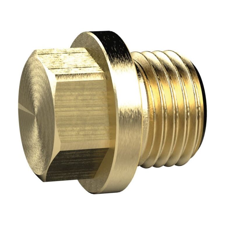 - Verschlussschraube, Außensechskant u. Bund, G 1, SW 27, Messing, Arbeitsdruck max. 25 bar, Betriebstemperatur max. 150 °C