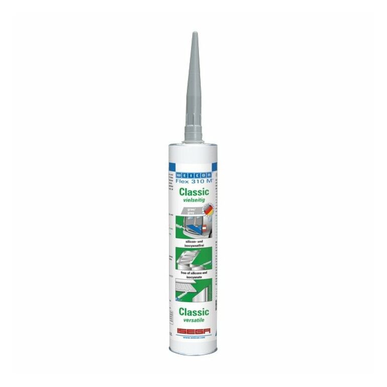 - Flex 310 M Classic ist ein elastischer Klebstoff auf MS-Polymer-Basis und eignet sich für Verklebungen von Metallen, vielen Kunststoffen, Keramik, Holz, Glas und Stein