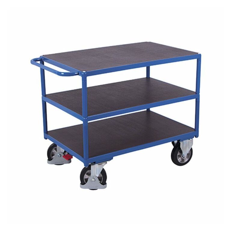 - Radsatz: Bereifung aus Elastik-Vollgummi auf Aluminium-Druckgussfelge mit Präzisions-Rillenkugellager, schwarz, Ø 200 mm, 2 Lenkrollen mit Zentralbremse EasySTOP und 2 Bockrollen, Lenkrollen mit Fußschutz
