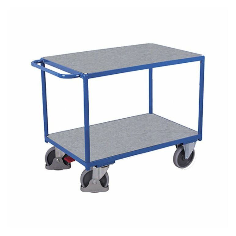 - Radsatz:Bereifung aus thermoplastischem Gummi auf Kunststofffelge mit Präzisions-Rillenkugellager, grau, spurlos, Ø 200 mm, 2 Lenkrollen mit Zentralbremse EasySTOP und 2 Bockrollen, Lenkrollen mit Fußschutz