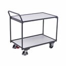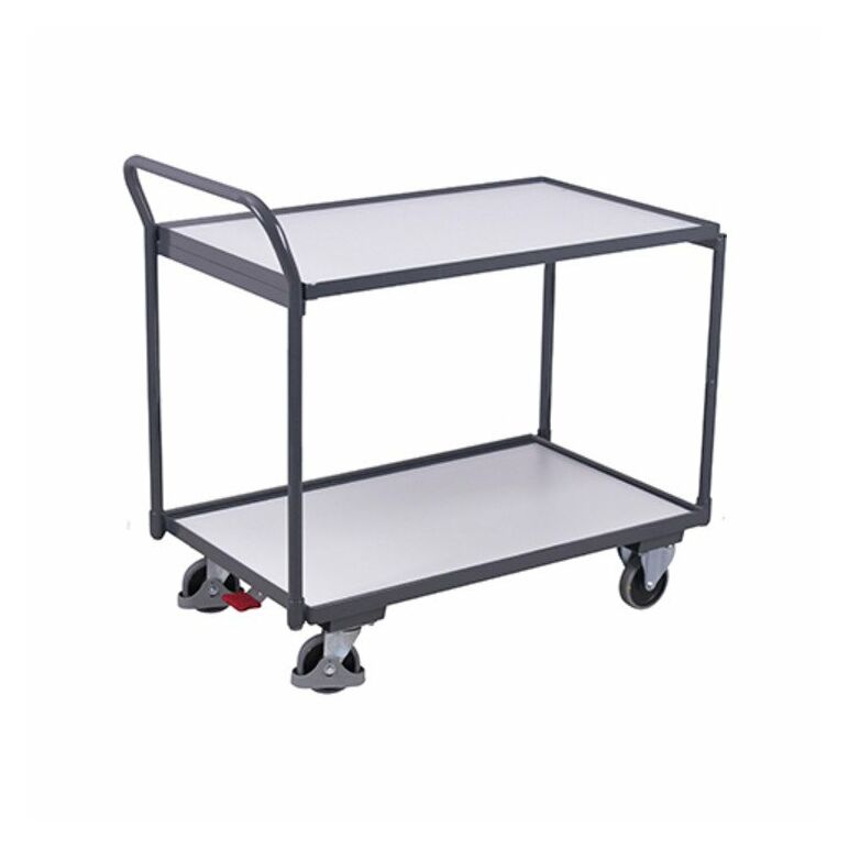 - Radsatz:Bereifung aus elektrisch leitfähigem Vollgummi auf Kunststofffelge mit Präzisions-Rillenkugellager, grau, Ø 125 mm, 2 Lenkrollen mit Zentralbremse EasySTOP und 2 Bockrollen, Lenkrollen mit Fußschutz