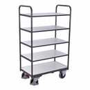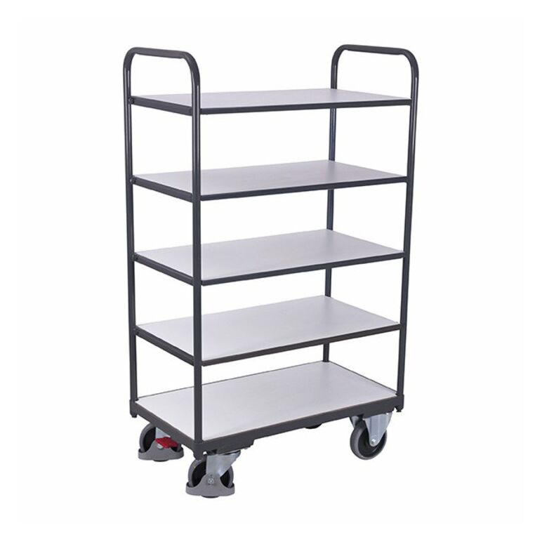 - Radsatz:Bereifung aus elektrisch leitfähigem Vollgummi auf Kunststofffelge mit Präzisions-Rillenkugellager, grau, Ø 160 mm, 2 Lenkrollen mit Zentralbremse EasySTOP und 2 Bockrollen, Lenkrollen mit Fußschutz