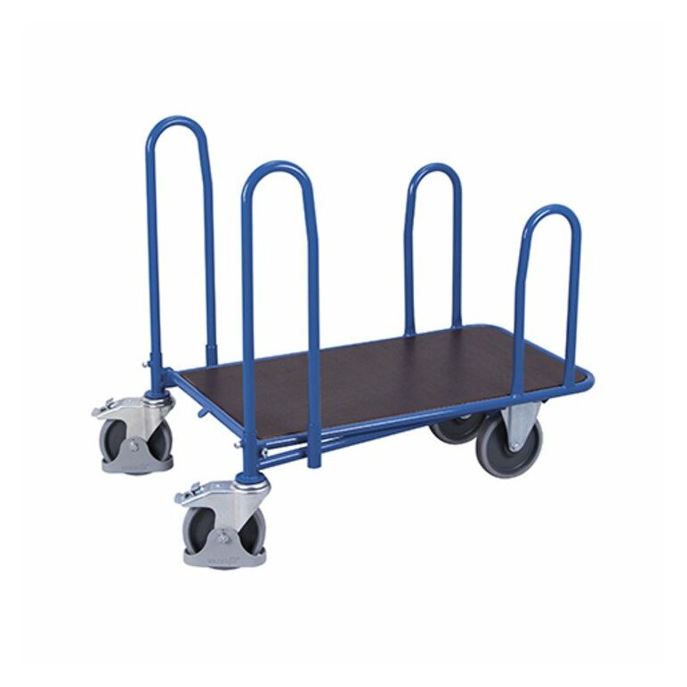 - Radsatz:Bereifung aus thermoplastischem Gummi auf Kunststofffelge mit Präzisions-Rillenkugellager, grau, spurlos, Ø 200 mm, 2 Brems- und 2 Bockrollen, Bremsrollen mit Fußschutz