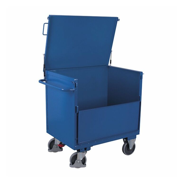 - Radsatz:Bereifung aus thermoplastischem Gummi auf Kunststofffelge mit Präzisions-Rillenkugellager, grau, spurlos, Ø 200 mm, 2 Lenkrollen mit Zentralbremse EasySTOP und 2 Bockrollen, Lenkrollen mit Fußschutz