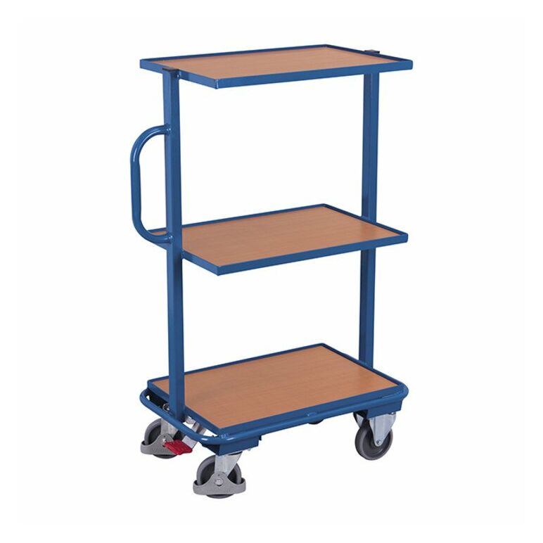 - Radsatz: Bereifung aus thermoplastischem Gummi auf Kunststofffelge mit Präzisions-Rillenkugellager, grau, spurlos, Ø 125 mm, 2 Lenkrollen mit Zentralbremse EasySTOP und 2 Bockrollen, Lenkrollen mit Fußschutz