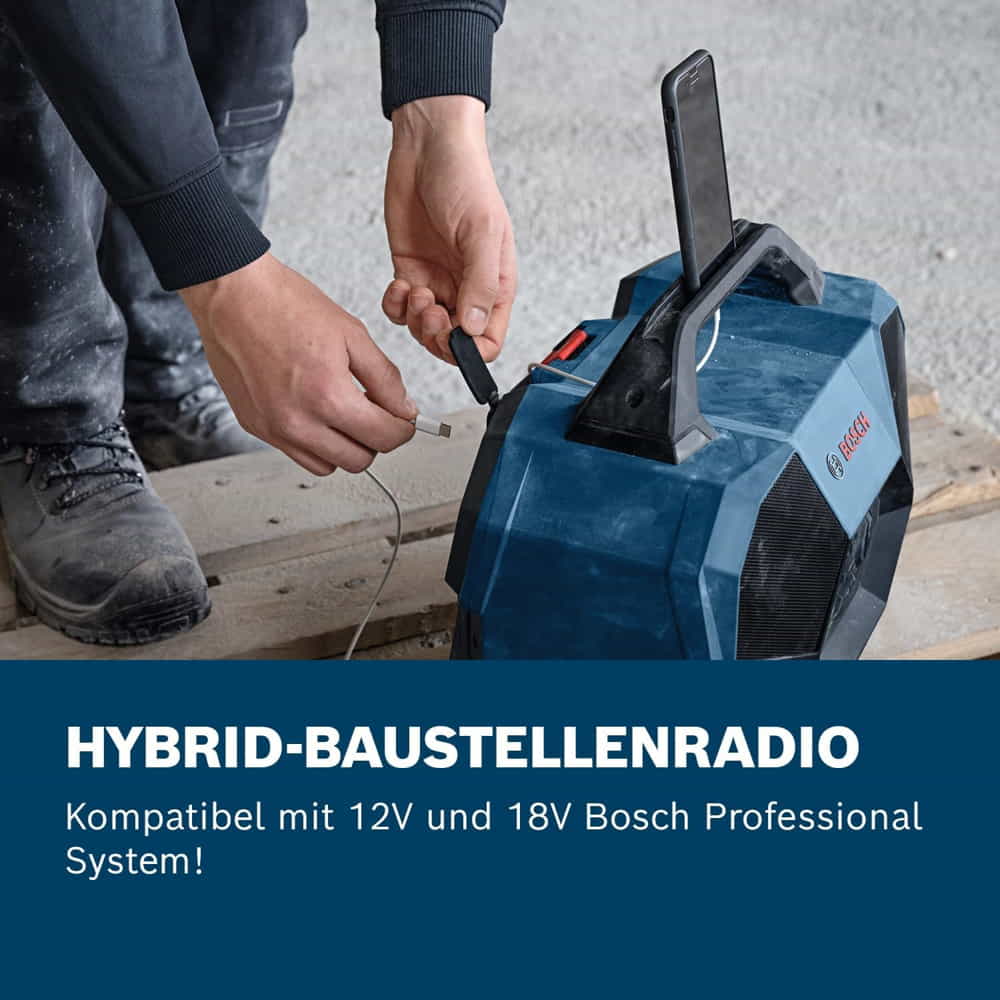 Der DMR 200 Baustellenlautsprecher von Makita überzeugt durch die hohe Klangqualität und das robuste Gehäuse. Das mit einem Tragegriff ausgestattete Gehäuse ist an den äußeren Rändern gummiert und jegliche Öffnungen sind staub- und schmutzfest verschlossen und zusätzlich gegen Spritzwasser geschützt (gemäß IPX 4). Das DMR 200 besitzt zusätzlich einen 3,5 mm Klinke-Aux-Anschluss, um den eigenen iPod oder MP3-Player anzuschließen. Zudem können Mobilgeräte auch über einen USB-Anschluss geladen werden. Der Lautsprecher kann über gängige 10,8 - 18 Volt Makita Einschub- und Aufsteckakkus oder über den mitgelieferten Netzadapter betrieben werden. Außerdem kann man das Gerät ganz einfach über Bluetooth mit seinem Mobiltelefon verbinden.