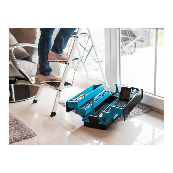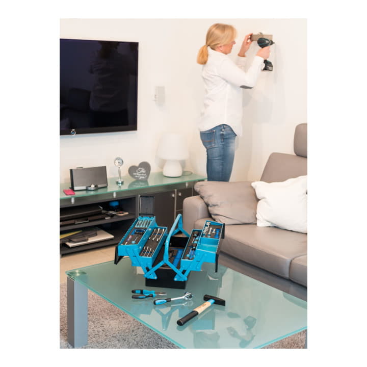 TRANSPORTABEL: Der kompakte Werkzeugkoffer ist mit einem komfortablen Griff ausgestattet, sodass Sie Ihr Werkzeug überall hin mitnehmen können und für jede handwerkliche Situation ausgestattet sind.