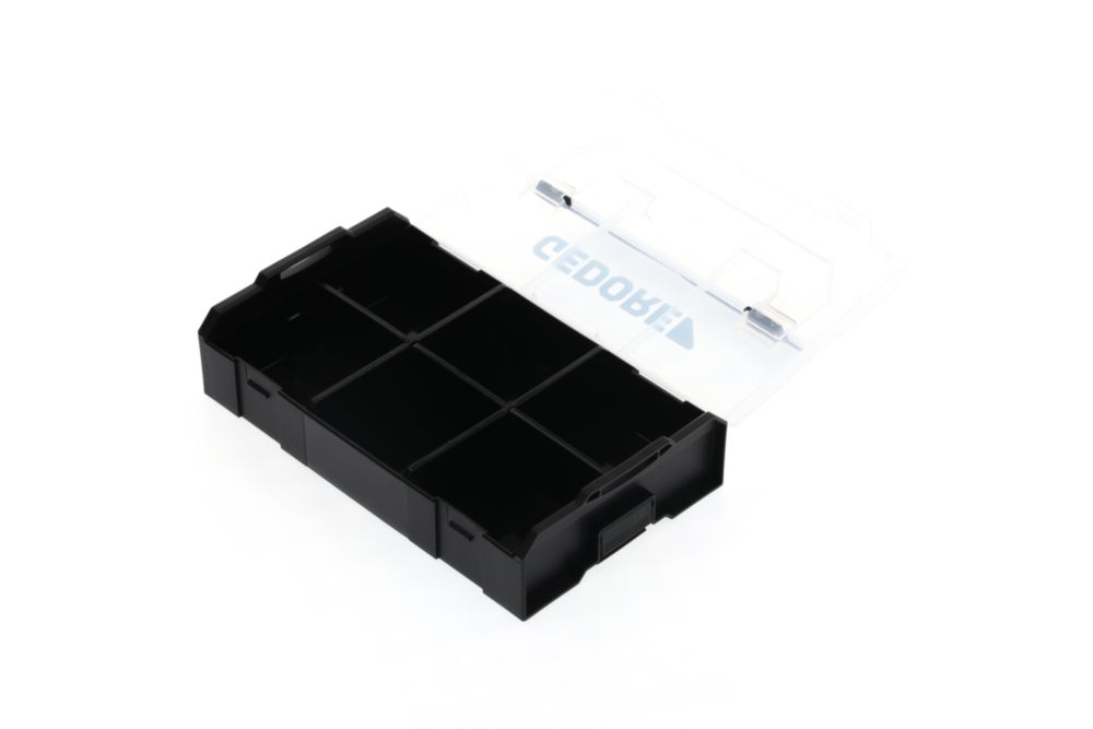 Praktische Aufbewahrungsmöglichkeit mit aufklappbarem Deckel zur übersichtlichen Sortierung von Schrauben, Muttern, Nägel, Dübel und weiteren Kleinteilen