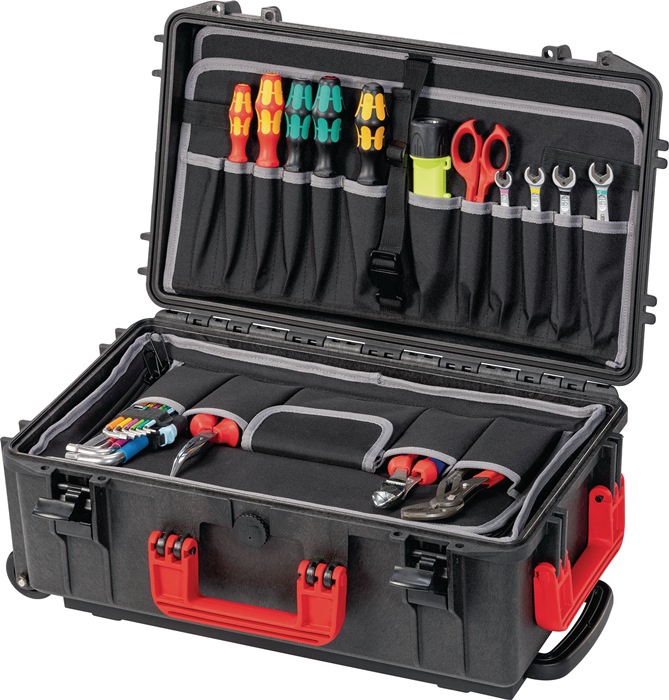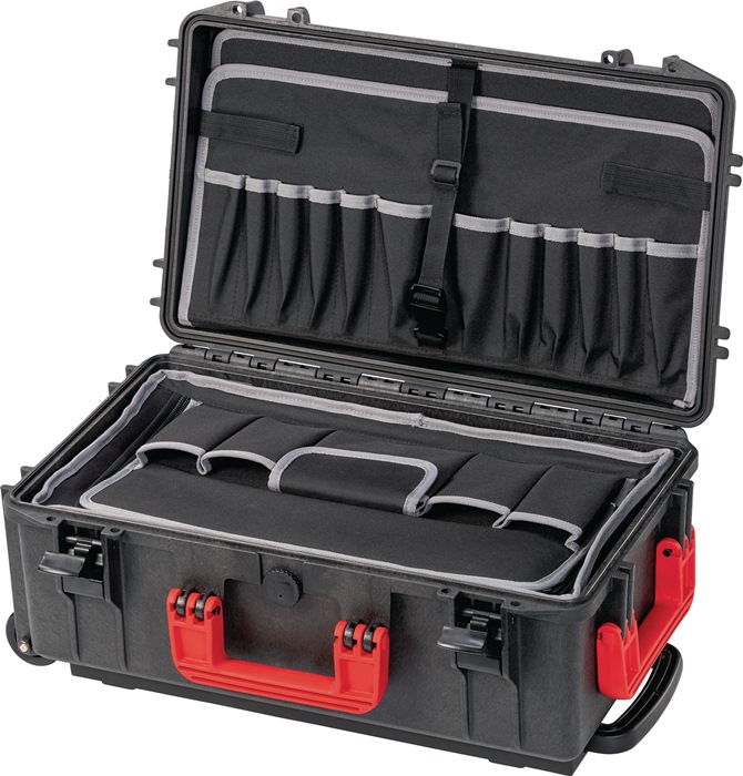 PRO Toolcase: Universal und modular, mit doppeltem Schutzschaum und strapazierfähigen Verschlüssen aus Polyamid für sicheren Transport teurer Werkzeuge. Integrierte Dichtung im Deckel schützt vor Feuchtigkeit und Staub. Seitliche Anschlüsse ermöglichen die Verbindung mit anderen PRO-Modulen.